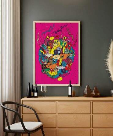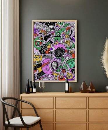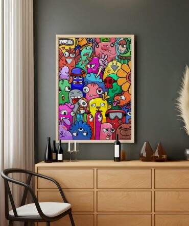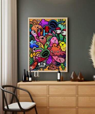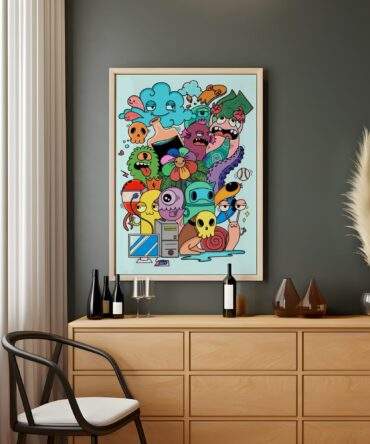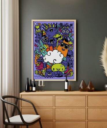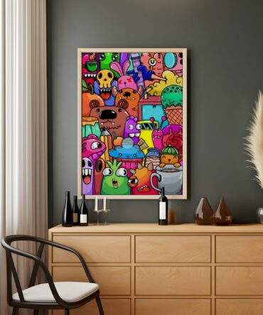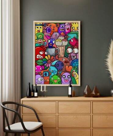 Ice Cream Doodle Surreal Creatures Colorful Chaos Matte Canvas Print