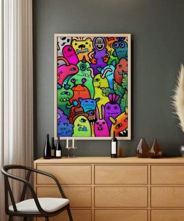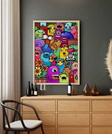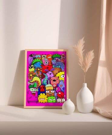 Colorful Monsters Wacky Creatures Pink Purple Green Matte Canvas Print