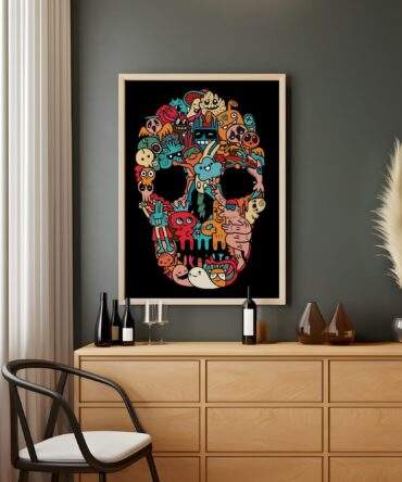 Doodle Skull Cute Monsters Character Mashup Matte Canvas Print