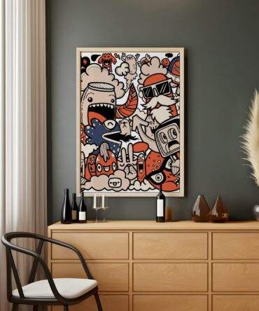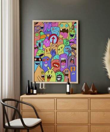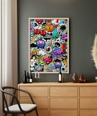 Urban Graffiti Doodle Sticker Mashup Pop Art Faces Matte Canvas Print