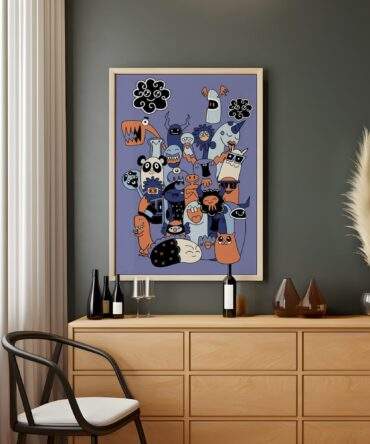 Minimalist Monsters Flat Style Happy Weirdos Matte Canvas Print