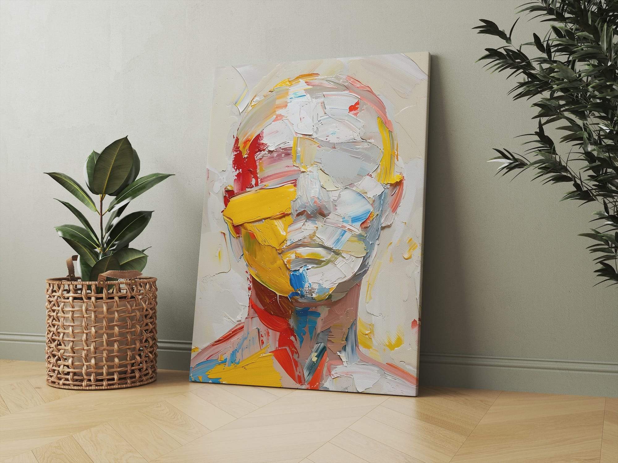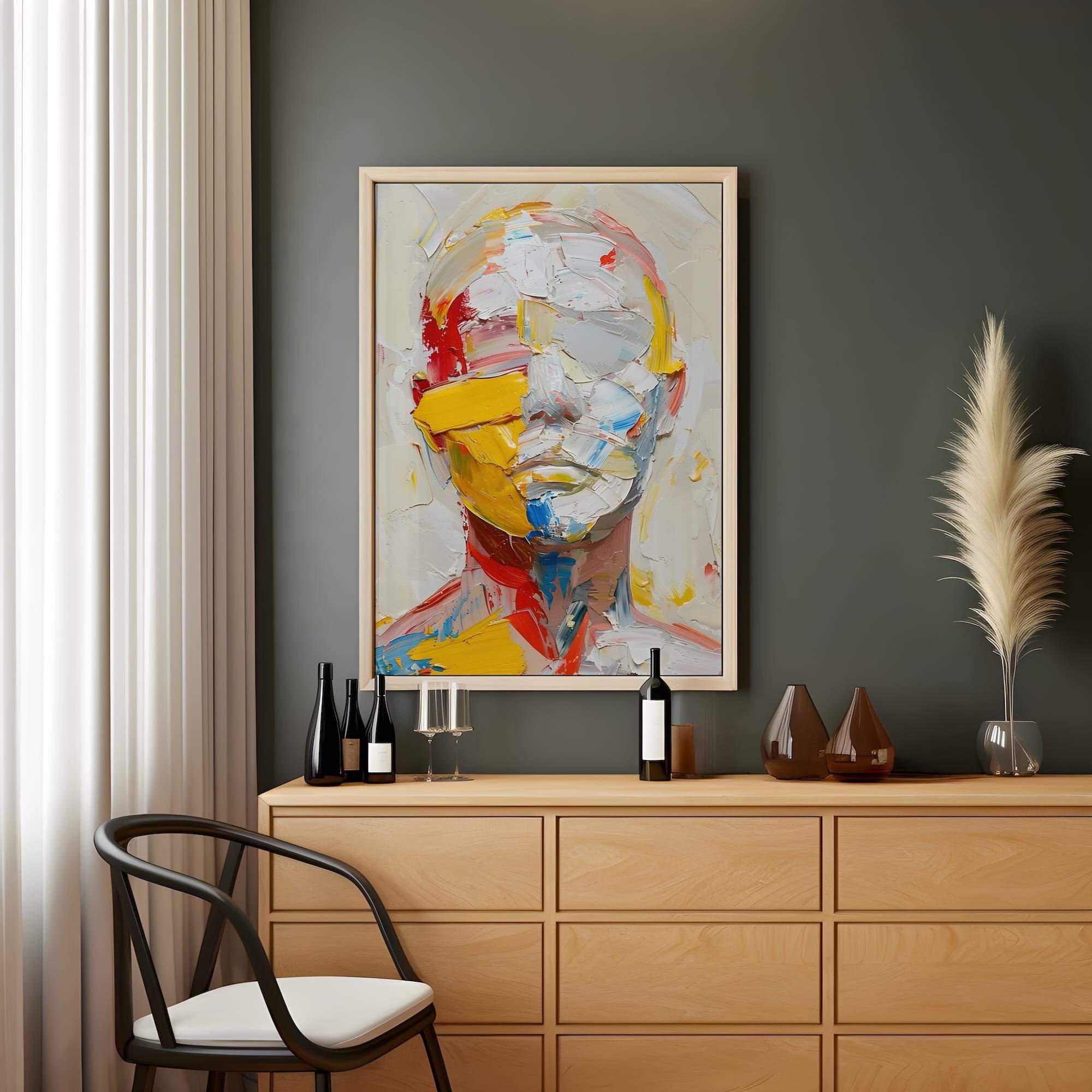 Raw emotion meets artistic technique in this captivating faceless portrait, where bold palette knife strokes create a symphony of multicolor expression. Each textural layer builds emotional depth across the matte canvas surface, transforming the faceless figure into a universal mirror for every viewer’s inner landscape. The thick, expressive brushwork imbues the piece with tactile energy, making it a powerful focal point whether anchoring a studio corner or commanding attention in a contemporary living room. Through pure color and gesture, this striking abstraction speaks to the complexity of human experience, inviting viewers to explore their own emotions and interpretations. The absence of facial features allows the vibrant hues and dynamic textures to take center stage, creating a work that is both deeply personal and universally relatable. This piece stands as a testament to the power of abstract art to convey profound emotional truths without relying on literal representation.