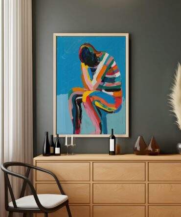 This striking lion portrait masterfully blends meticulous pencil artistry with bold artistic expression, creating a symmetrical composition that immediately captivates the viewer. The fierce, forward-facing gaze of the majestic creature establishes an instant connection, its quiet power commanding attention and respect. The innovative transition between intricate sketch work and bolder elements adds a layer of visual intrigue, lending depth and sophistication to the piece. Set against a matte canvas, the artwork’s careful attention to detail and balanced design evoke both intimacy and power, making it an ideal focal point for a home office or modern den. This portrait of wild elegance effortlessly elevates any space, transforming walls into statements of strength and beauty with its confident artistic flair. The seamless fusion of realism and artistic vision results in a compelling piece that brings the untamed spirit of the wild into refined interior spaces.