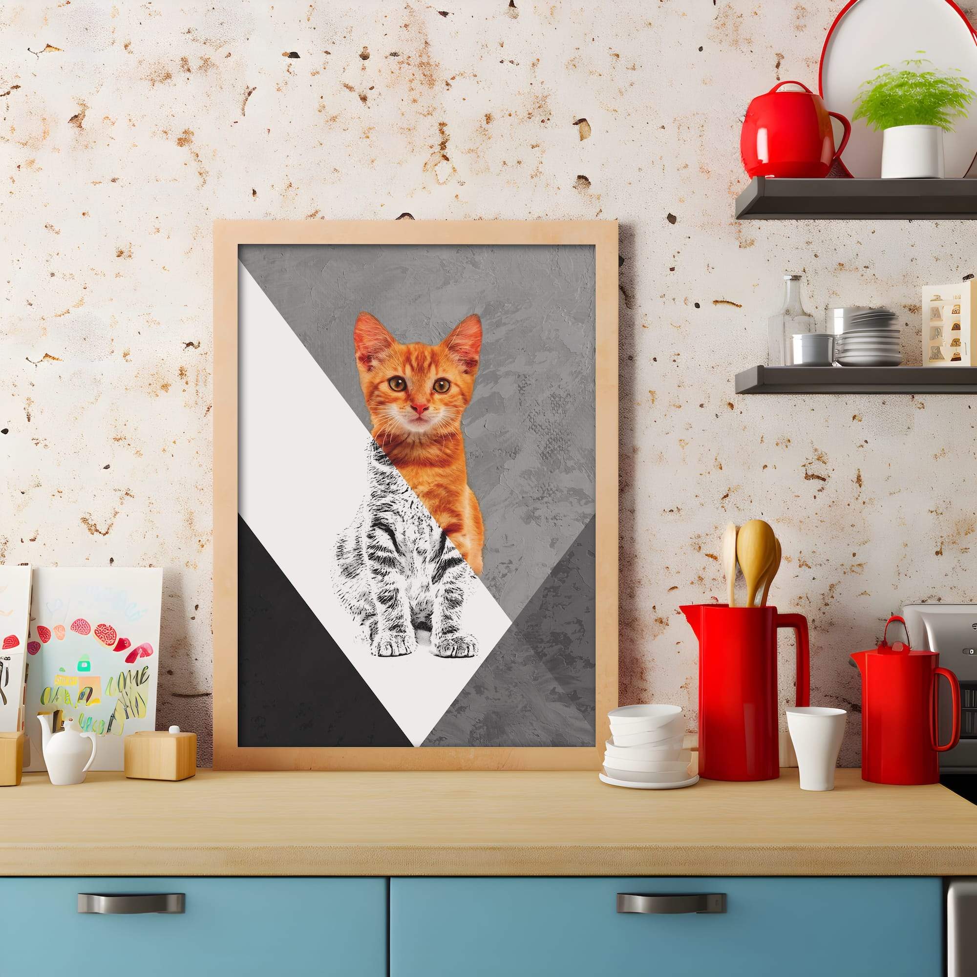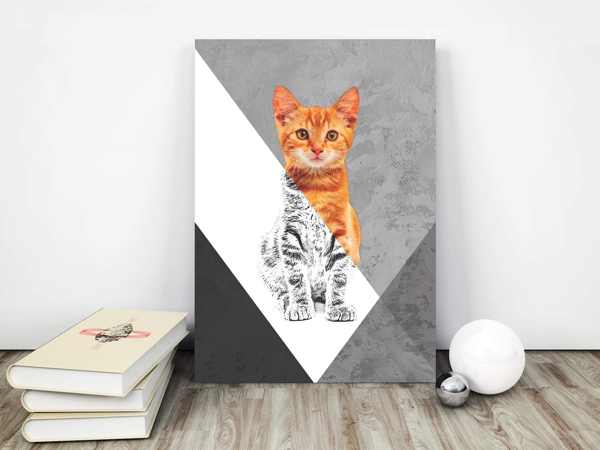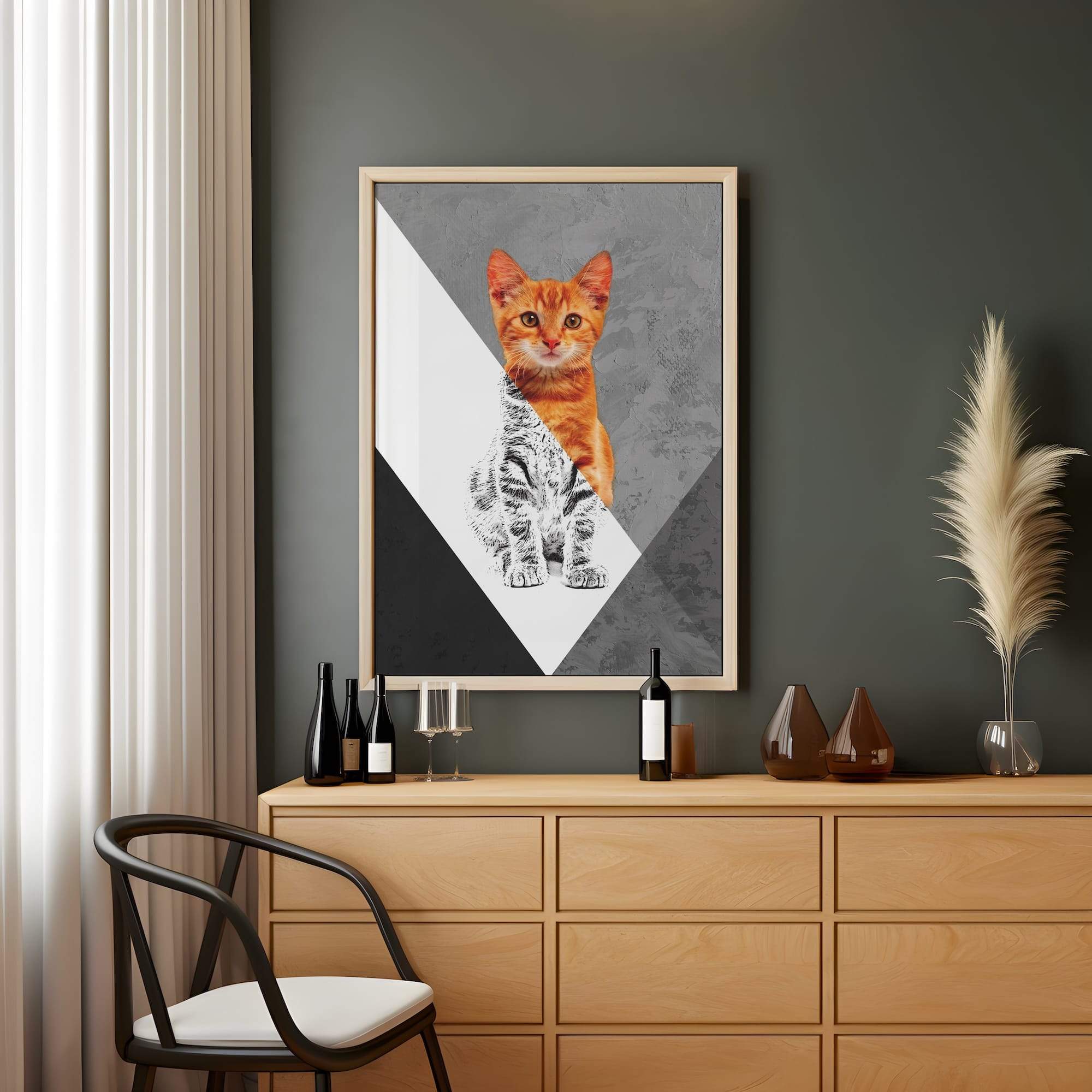 Sweetness meets artistry in this charming orange tabby’s dual-world existence. The sketch split design captures feline curiosity in its purest form—half rendered in warm, realistic tones, half dancing in delicate pencil strokes. Those knowing kitten eyes seem to follow your daily rhythms with gentle amusement, while the minimalist approach keeps the focus on pure, unadorned charm. The matte canvas texture adds a softness that mirrors actual fur, creating an almost tactile warmth. This piece finds its home in cozy reading corners, sunlit kitchen nooks, or anywhere that celebrates life’s simpler pleasures. A gentle reminder that sometimes the most profound art comes in the smallest, most loving packages.